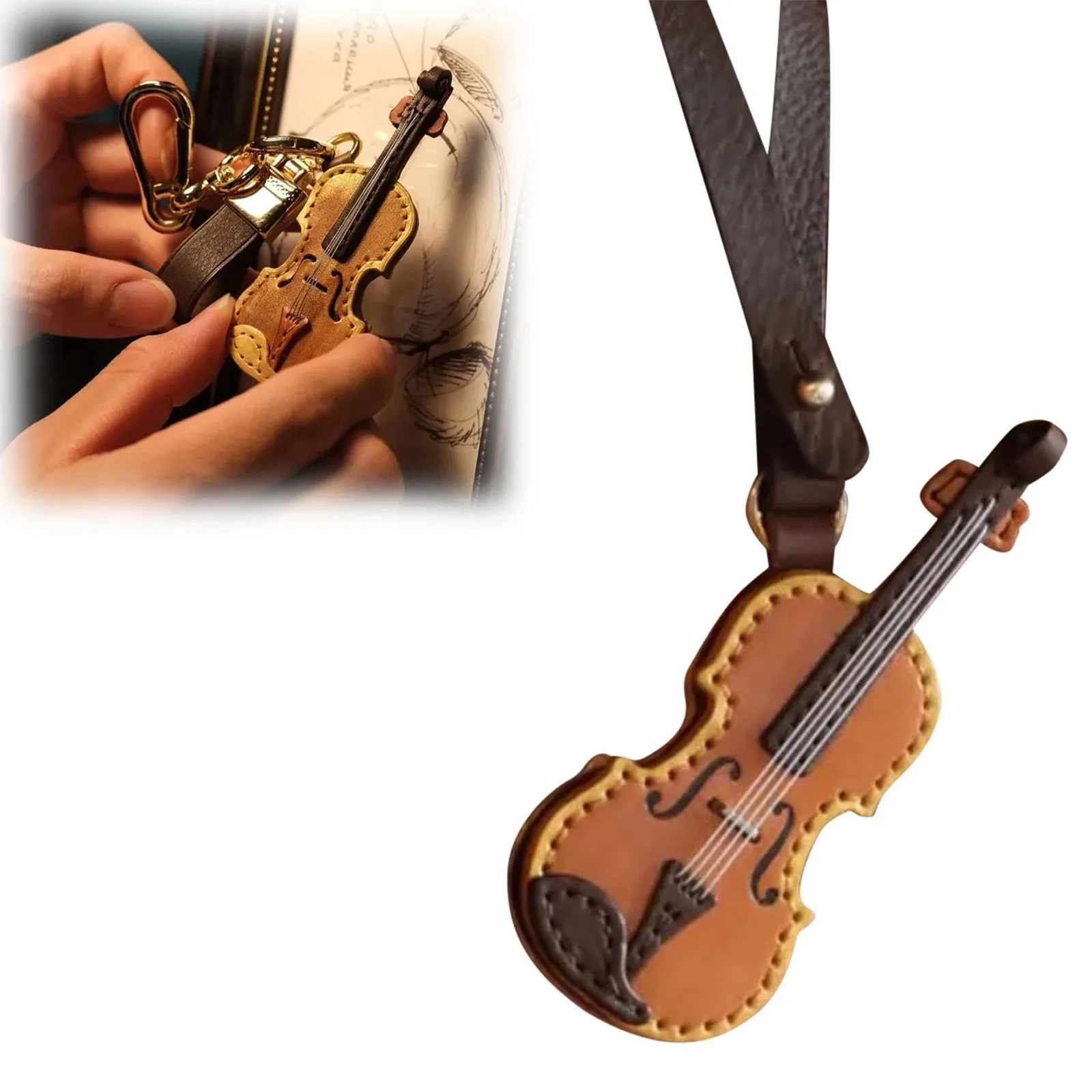 Crafted Leather Violin Keychain Miniature Musical Instrumen Keychain Niche Design Sense Backpacks Decoration Gift For Christmas